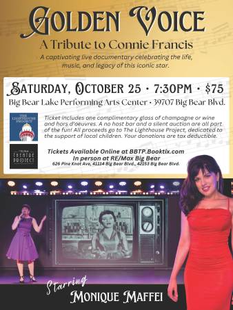 No se pierda 'Golden Voice - A Tribute to Connie Francis' en el Big Bear Lake Performing Arts Center por una única noche, el 25 de octubre.