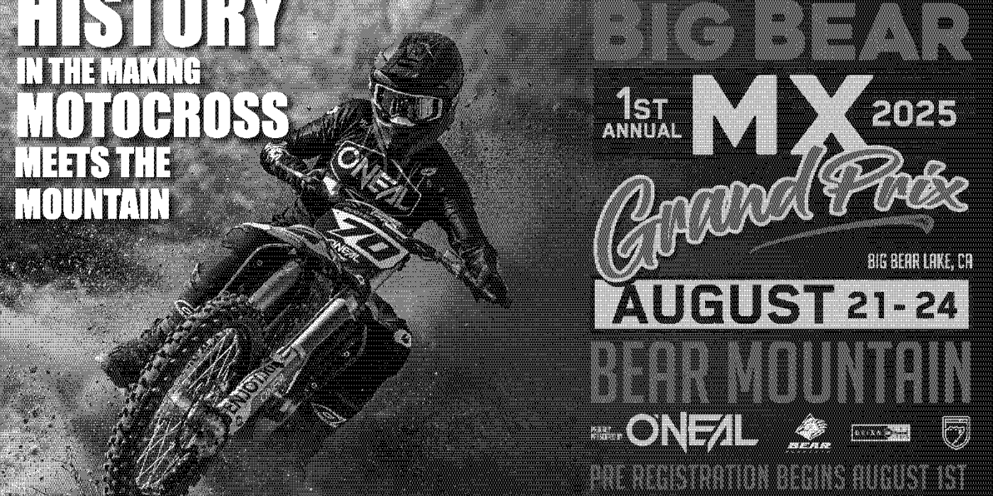 El Gran Premio Big Bear MX presentado por O'NEAL tendrá lugar del 21 al 24 de agosto. Este evento de motocross reúne a la Swapmoto Race Series y al equipo de Big Bear Mountain Resort