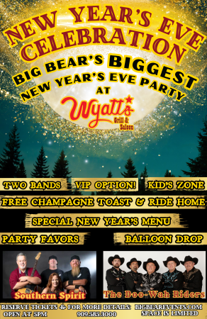 Wyatt's Grill & Saloon ofrece la única auténtica celebración familiar de Nochevieja en Big Bear, con actividades para niños, música en directo, baile y cena.